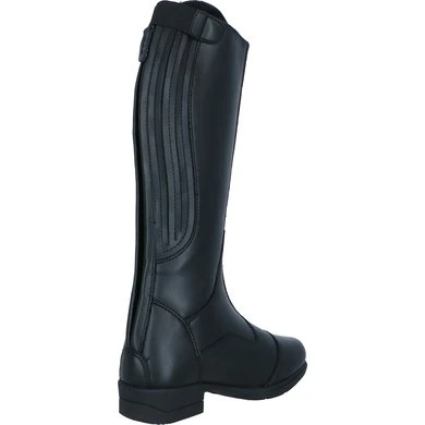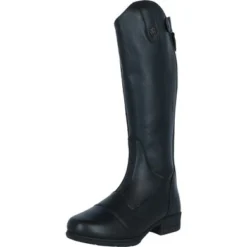 De Marcia-laarzen zijn gemaakt van synthetisch leer met een elegante laarsconstructie van Moretta, voor een duurzame, onderhoudsvriendelijke afwerking. Een nauwsluitende pasvorm wordt bereikt met zachtere stretch-buitenpanelen die het been omsluiten. Dressuur gesneden tops. Wicking voeringen voor geacclimatiseerde voeten. Schokabsorberende inlegzolen bieden voorgevormd comfort onder de voeten. Anti-shock zolen met stalen schachten voor verlichting van vermoeidheid in stijgbeugels. YKK ritsen.