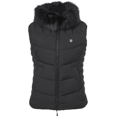Warm gewatteerd vest met een afneembare rand van imitatiebont aan de bovenzijde van de kraag.