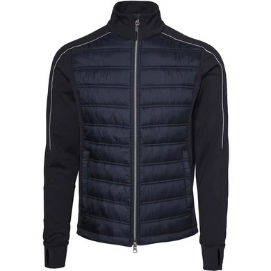 Sportief hybride unisex jack met comfortabel gewatteerde body en stretch tech fleece zijpanelen en mouwen.