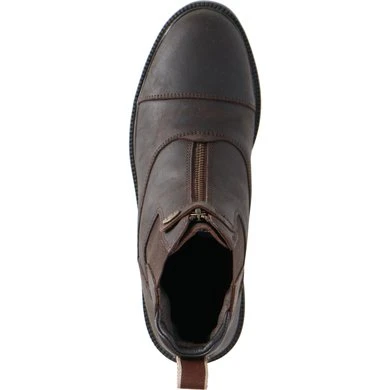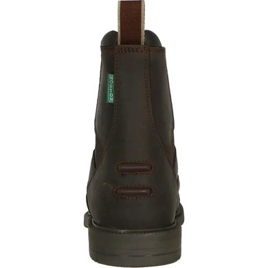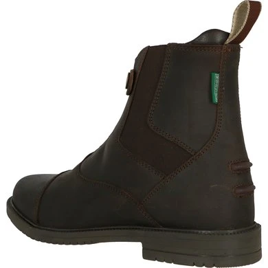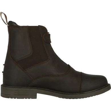 Jodphurs met bovenkant van geolied vaarssplitleer gevoerd met varkensleer. Met YKK-ritssluiting vooraan en drukknoop. Dikke, gegroefde rubberen zool. Elastisch inzetstuk. Antislipzool en hak. Spoordrager.