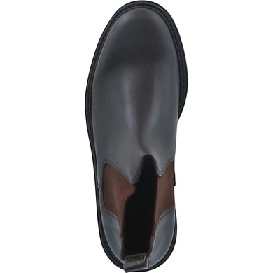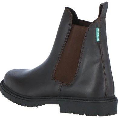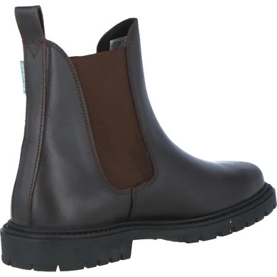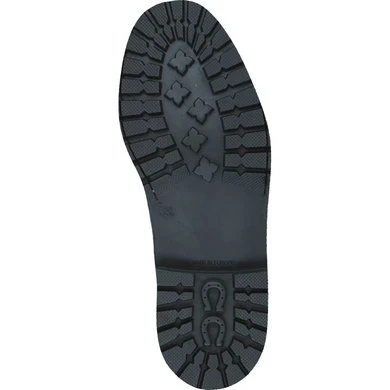 Bovenkant van geolied vaarssplitleder. Dikke geribbelde rubberen zool. Elastisch inzetstuk. Antislip zool en hiel. Schacht en neus gevoerd met imitatie korrelig varkensleder, voet van suède. Europese makelij.
