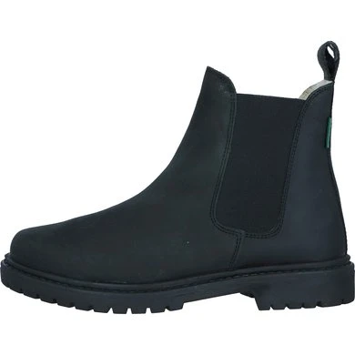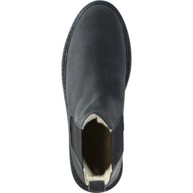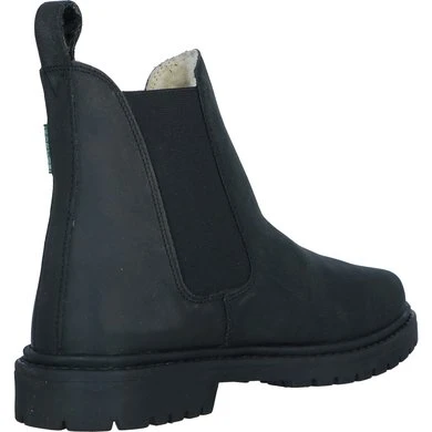 Bovenkant van geolied vaarssplitleer. Dikke, gegroefde rubberen zool. Elastisch inzetstuk. Antislipzool en hak. Voering in synthetische schapenvacht.