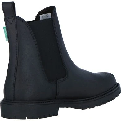 Bovenkant van geolied vaarssplitleder. Dikke geribbelde rubberen zool. Elastisch inzetstuk. Antislip zool en hiel. Schacht en neus gevoerd met imitatie korrelig varkensleder, voet van suède. Europese makelij.