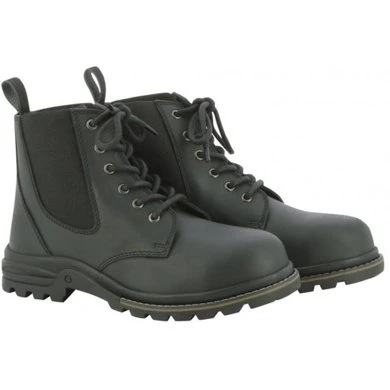 Buffelleren schoenen met vetersluiting. Elastisch inzet voor comfort. Antislip TPR buitenzool. Texon metalen binnenzool voor optimale veiligheid, 4 mm Eva binnenzool met suรจde textielbekleding.