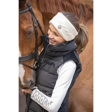 Het is gemaakt van een stretchstof met fluwelen inzetstukken die perfect passen en het die vrouwelijke toets geven die zowel op stal als in de stad kan worden meegenomen.