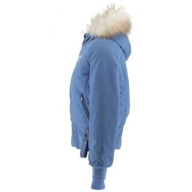 Korte bomber gevoerd met polar fleece en heeft een synthetische bont capuchon. Brede elastische band in de taille en polsen. Afneembare capuchon en officierskraag. Polyfill voering.