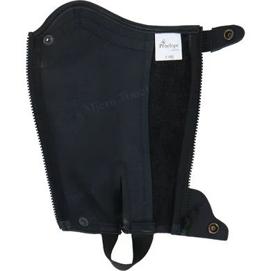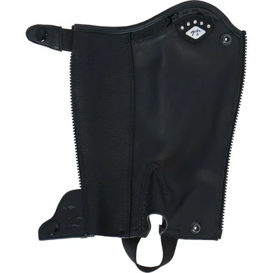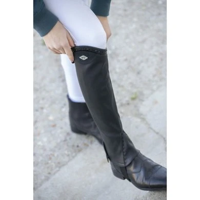 Minichaps van zwart imitatieleer met ritssluiting en Pénélope-details. Het imitatieleer omhult de kuit en is geheel elastisch. Er is een lipje aan de onderkant van het been om de ritssluiting te beschermen en een aan de bovenkant met het Penelope-logo erop. Bovenop de minichaps zit een ruitvormig stuk met het Pénélope-logo. Samenstelling: buitenkant 100% polyurethaan: Binnenkant been van 100% rundleer. Onderhoud: Eenvoudig te reinigen met een spons en een beetje water.