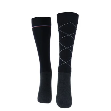 Set van twee paar sokken, waaronder een effen paar en één met strepen. Crème strepen op zwarte sokken. Zwarte sokken met een Franse vlagkleur op de bovenkant. Samenstelling: 70 % Polyamide + 28 % Viscose + 2 % Elastaan. Machine wasbaar op 30°C. Niet in de droger.