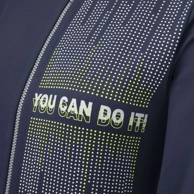Sportief vest gemaakt van een fijne, dikkere technische stof voor een hoog draag comfort. Voorzien van een print die verticaal over de voorkant loopt, You can do it!. Daarnaast heeft het vest zakken aan de voorzijde die voorzien zijn van een press button.