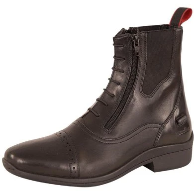 De twee voorritsen, elastische zijstukken en elastische veters zorgen samen voor een perfecte pasvorm. De binnenzool met zachte kussens en de verstevigde hiel bieden steun en bescherming. De jodhpur bevat een Cambrelle® voering, die sneldrogend, comfortabel, extreem slijtvast en nagenoeg ongevoelig voor schimmels en bacteriën is. Tot slot is deze jodhpur voorzien van een rubberen anti-slipzool met een speciaal profiel voor de perfecte grip.