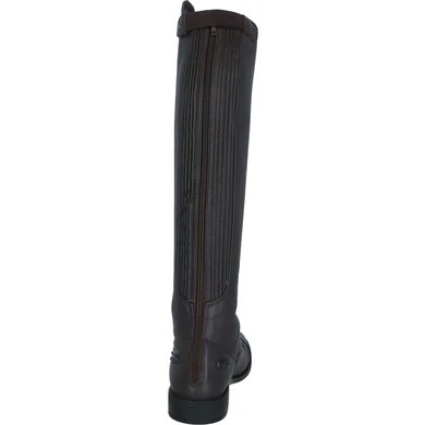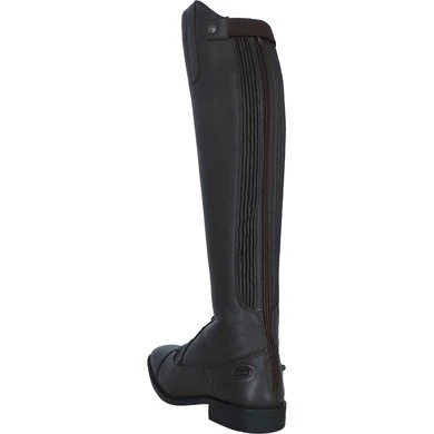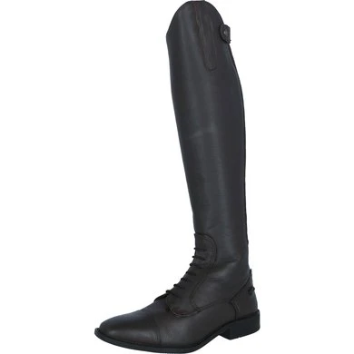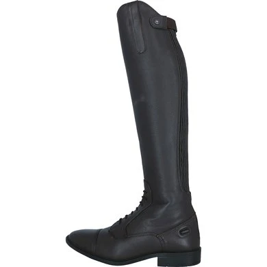 Comfort en elegantie komen samen in deze rijlaars. De laarzen zijn volledig gemaakt van natuurlijk gelooid leder en zijn voorzien van een subtiele textuur aan de buitenkant. De voorkant van de laars is afgewerkt met een elastische veter. De YKK rits aan de achterkant is aan beide zijden voorzien van elastiek waardoor de laars een aansluitende pasvorm heeft. De rits sluit van onder naar boven en is bovenaan voorzien van een rits beschermer. Twee sporenknopjes zorgen ervoor dat sporen op de juiste plek blijven zitten en niet naar beneden schuiven. De laars is voorzien van een Rock Port voering. Deze voering zorgt er niet alleen voor dat de rijlaars zacht en comfortabel aanvoelt, maar de voering is ook ademend en antibacterieel. Op de zool, die gemaakt is van TPR, staat het Premiere logo afgebeeld.