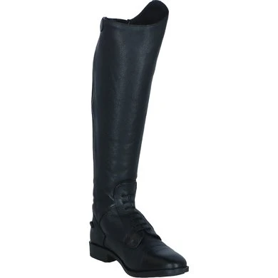 Comfort en elegantie komen samen in deze rijlaars. De laarzen zijn volledig gemaakt van natuurlijk gelooid leder en zijn voorzien van een subtiele textuur aan de buitenkant. De voorkant van de laars is afgewerkt met een elastische veter. De YKK rits aan de achterkant is aan beide zijden voorzien van elastiek waardoor de laars een aansluitende pasvorm heeft. De rits sluit van onder naar boven en is bovenaan voorzien van een rits beschermer. Twee sporenknopjes zorgen ervoor dat sporen op de juiste plek blijven zitten en niet naar beneden schuiven. De laars is voorzien van een Rock Port voering. Deze voering zorgt er niet alleen voor dat de rijlaars zacht en comfortabel aanvoelt, maar de voering is ook ademend en antibacterieel. Op de zool, die gemaakt is van TPR, staat het Premiere logo afgebeeld.