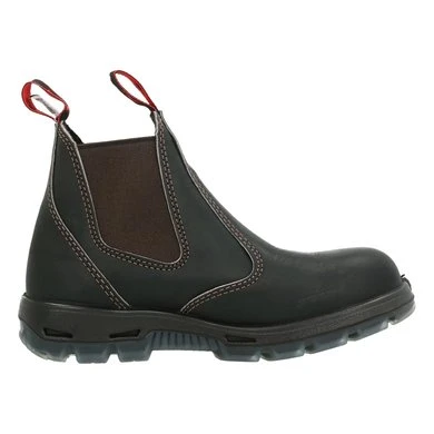 Redback USBBK. Robuuste unisex veiligheidslaarzen met de beste draageigenschappen: Luchtgeveerde zolen en inlegzolen maken de schoen super comfortabel. De zoolconstructie is waterdicht en de stevige lussen en elastische banden zorgen voor een gemakkelijke instap. Het bovenwerk is van geolied rundleer, 2,5-2,8 mm dik. Zolen: PU/TPU. Met stalen neus ISO 20345-2011 Klasse1 – SB