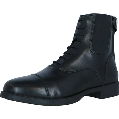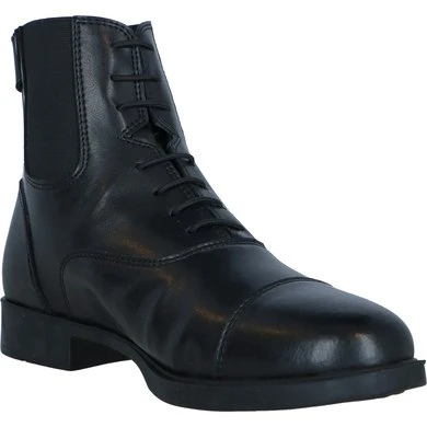 Jodphurs met veters van synthetisch materiaal met een mesh voering. YKK ritssluiting aan de achterkant met een drukknoop onder een beschermflapje. Bovenzijde verstevigd aan de achterkant, binnenzool van EVA foam en buitenzool van rubber.