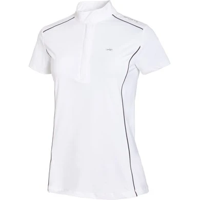 Het dames wedstrijdshirt Ariana Style van Schockemöhle Sports krijgt een extra sportieve uitstraling door een voor- en achterpas en deelnaad met contrasterende biezen. Het biedt ook UV-bescherming en is gemaakt van sneldrogende en ademende materialen. Met een eenvoudige verborgen ritssluiting aan de voorkant en een opstaande kraag met magnetische sluitingen, wordt het de ideale metgezel voor bijna elke toernooi-outfit.