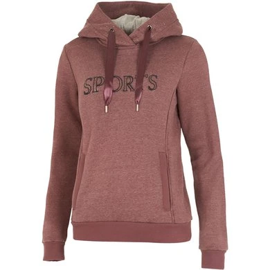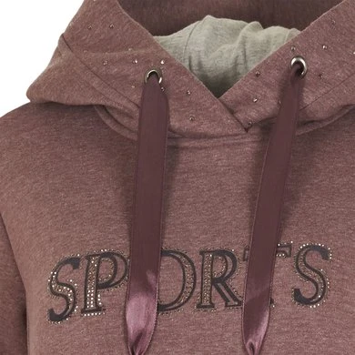Warme dameshoodie | getailleerde vorm | ritszakken met logorits | flockprint met strass-steentjes op de voorkant | capuchon met jersey en decoratief lint | kap kan worden vastgezet | strass paard op de mouw