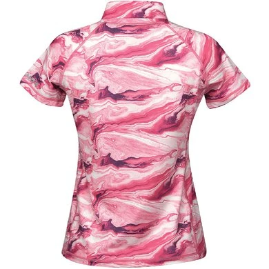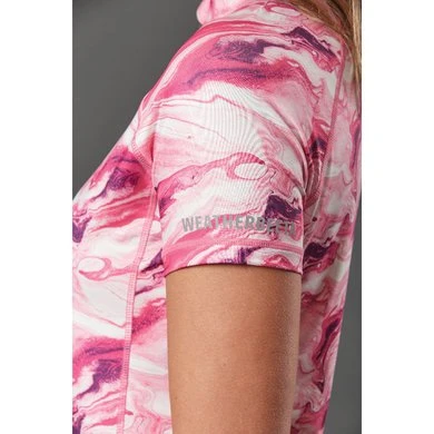 De WeatherBeeta Ruby Printed Short Sleeve Top biedt bi-stretch jersey stof voor beweging en comfort, waardoor dit een geweldige ademende basislaag is. De Comfort Dry-technologie zorgt ervoor dat al het vocht snel opdroogt om je koel, comfortabel en droog te houden, met mesh zijpanelen, onder de mouwen en rugstuk voor extra ventilatie om je koel te houden. Met een opstaande kraag met 1/4 ritssluiting aan de voorkant en een slanke pasvorm voor een flatterende en stijlvolle look met marmerprint. 90% polyester/10% elastaan.